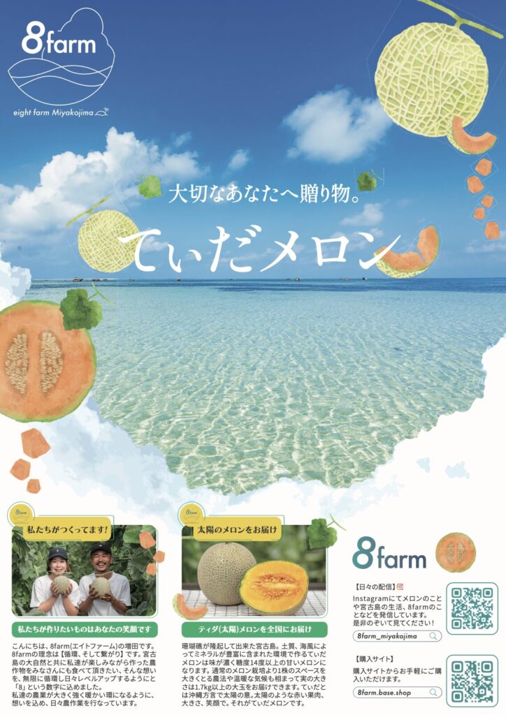 「農業と通してあなたの笑顔をつくりたい」をコンセプトに宮古島で農業を営む8Farm様のデザイン全般を担当させていただきました。